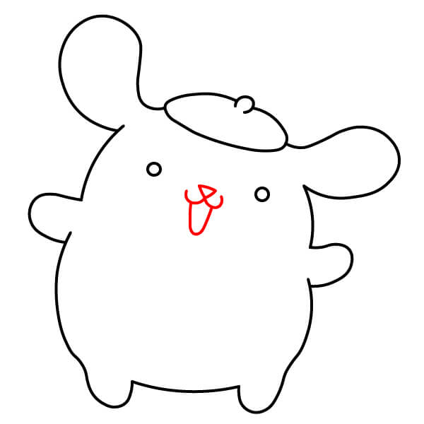 Dibuja dos líneas curvas en la parte frontal del cuerpo de Pompompurin, formando sus patas listas para sostener algo.