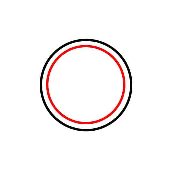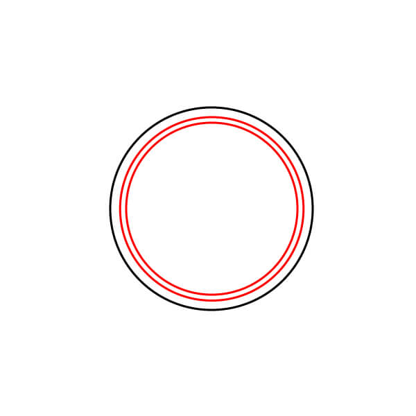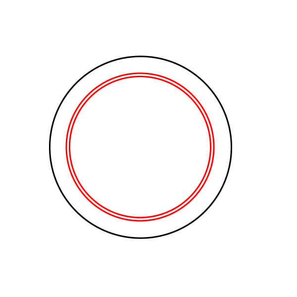 Dentro del primer círculo, dibuja dos círculos concéntricos más, muy juntos. La distancia entre el círculo exterior y los círculos interiores define el borde, y el círculo interior es la esfera.