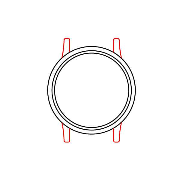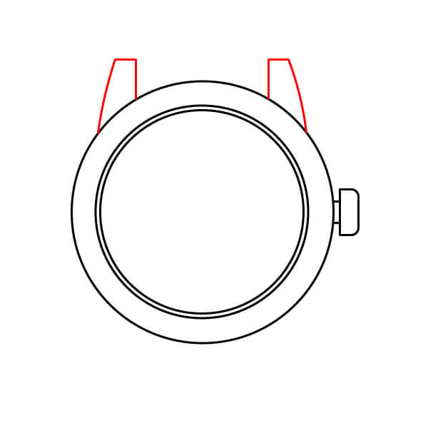 En la parte superior de la caja del reloj, dibuja dos trapecios cortos y cónicos. Estos son las asas superiores que sujetarán la correa.