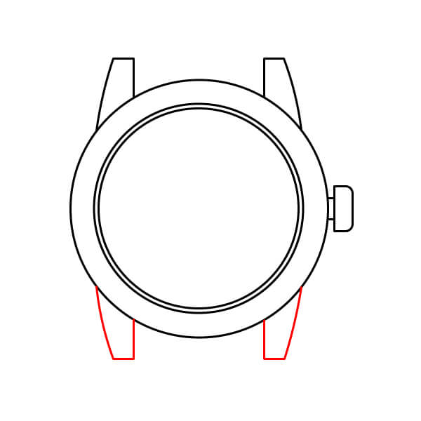 En el lado derecho de la caja, dibuja una pequeña extensión semicircular o en forma de D. Esta es la corona, que se utiliza para ajustar la hora.