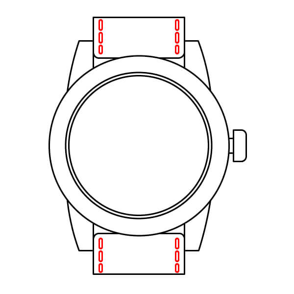 En los lados superior e inferior de la correa, dibuja dos pequeñas columnas ovaladas. Estos representan los orificios de ajuste de la correa.