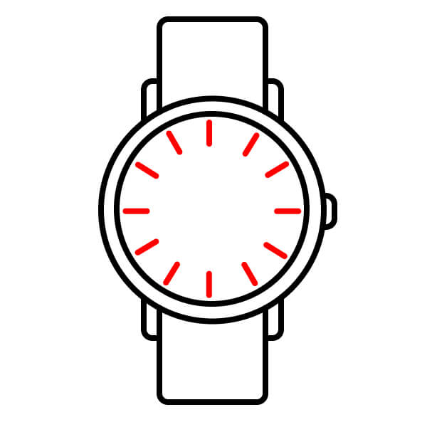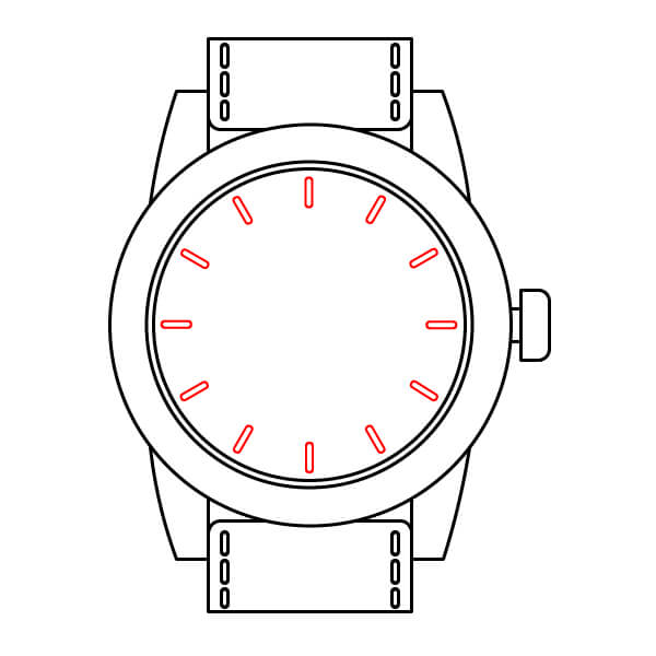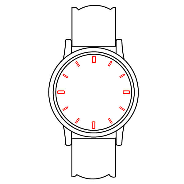 En la esfera del reloj (el círculo interior), dibuja doce líneas cortas y uniformemente espaciadas alrededor del perímetro. Estos son los marcadores de hora.