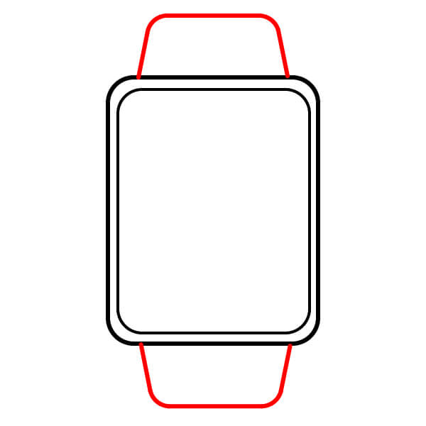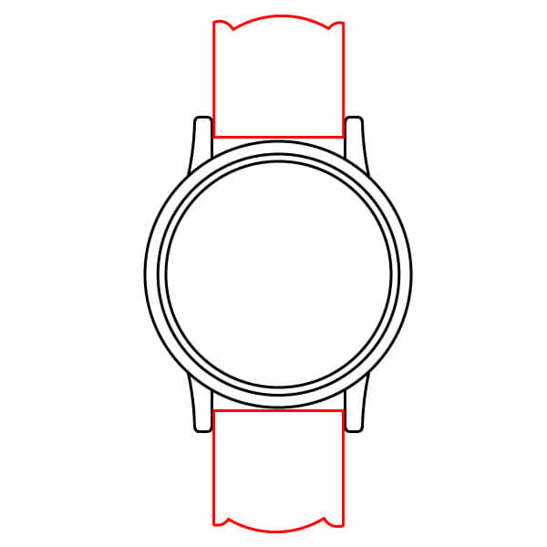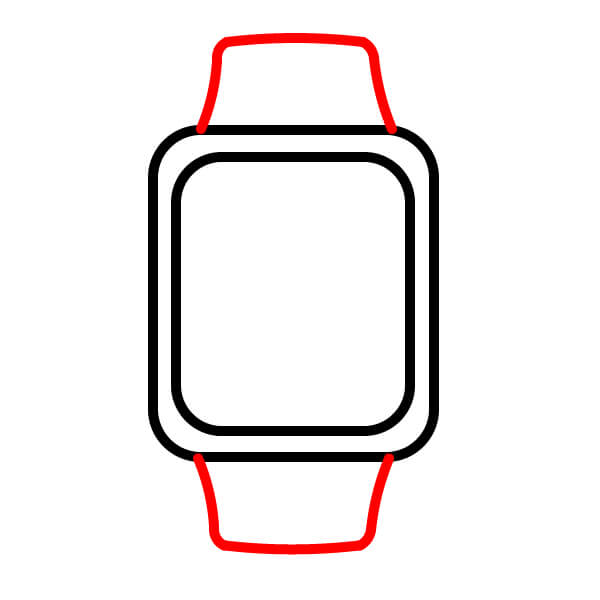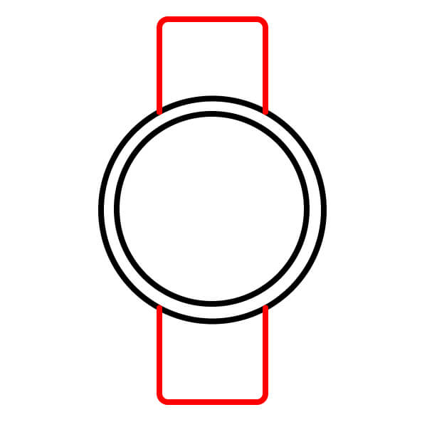 Dibuja dos tiras rectangulares que se extiendan desde las asas superior e inferior. Estas son la correa del reloj.