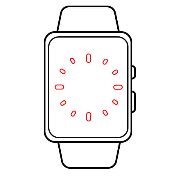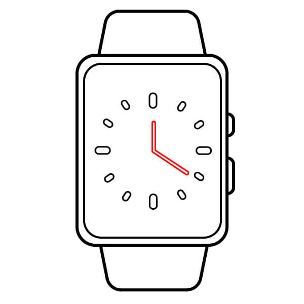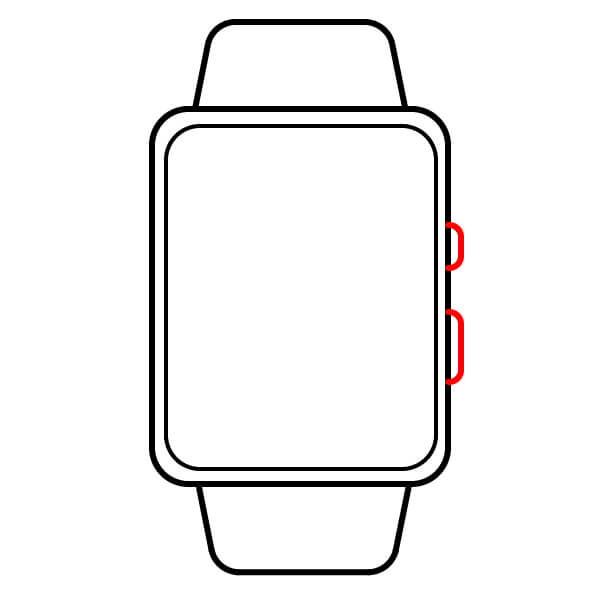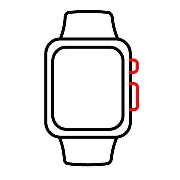 En el lado derecho de la caja, dibuja dos círculos pequeños y largos. Estos son los botones laterales o la corona digital/teclas.