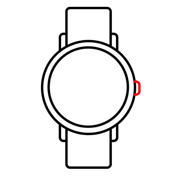 En el lado derecho de la caja del reloj, dibuja un pequeño rectángulo redondeado. Este representa la corona que se usa para ajustar la hora.