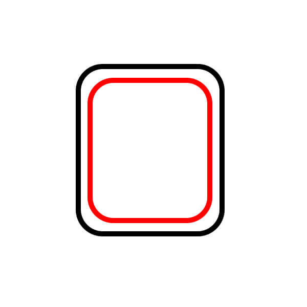Dentro de la forma principal, dibuja un rectángulo redondeado concéntrico ligeramente más pequeño. Esta forma interior representa el área de la pantalla y el bisel que la rodea.