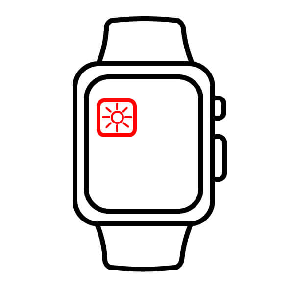 Dentro del área de la pantalla, dibuja el primer ícono de la aplicación. Este ejemplo muestra un ícono cuadrado redondeado con un ícono de sol/brillo dentro.
