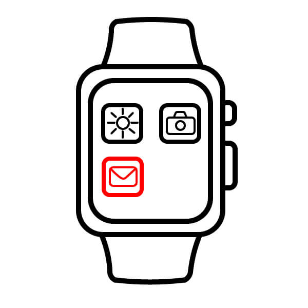 Debajo del ícono de sol/brillo, dibuja el tercer ícono de la aplicación. Este es un cuadrado redondeado que contiene el icono de un sobre/correo.
