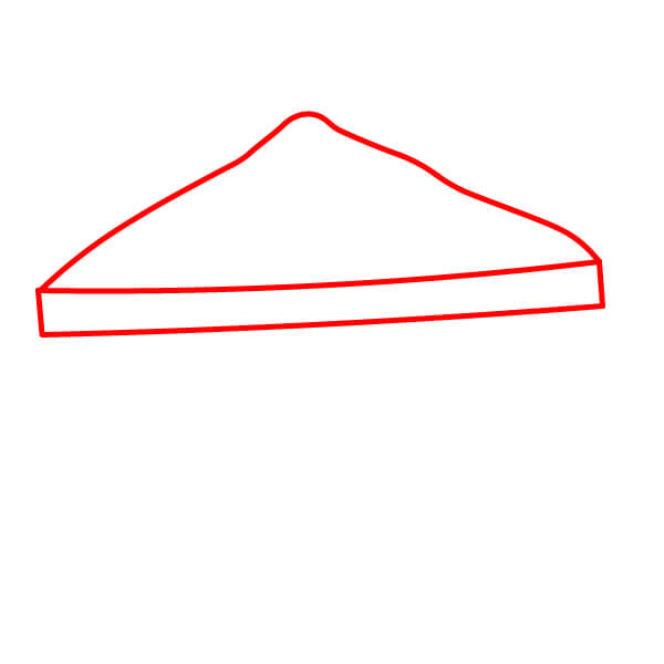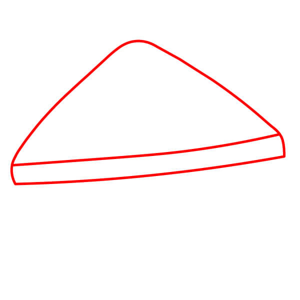 Paso 1: Comienza dibujando el contorno de la rebanada superior de pan. Es un triángulo con la base plana y un ligero grosor visible en el lateral.