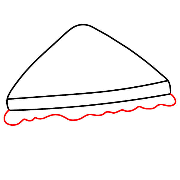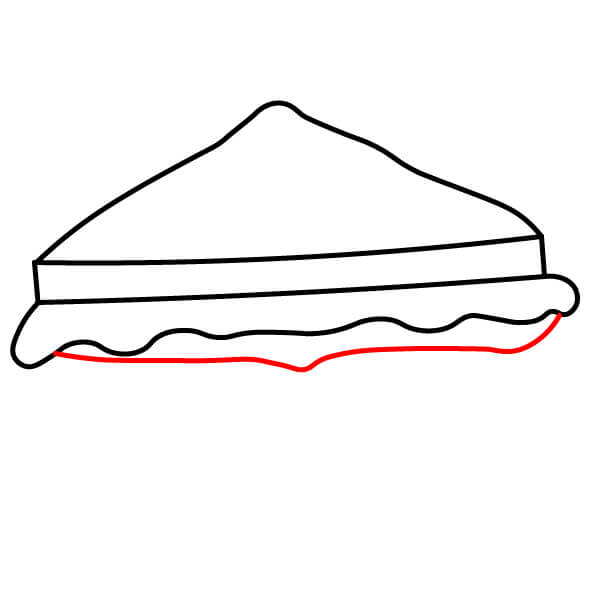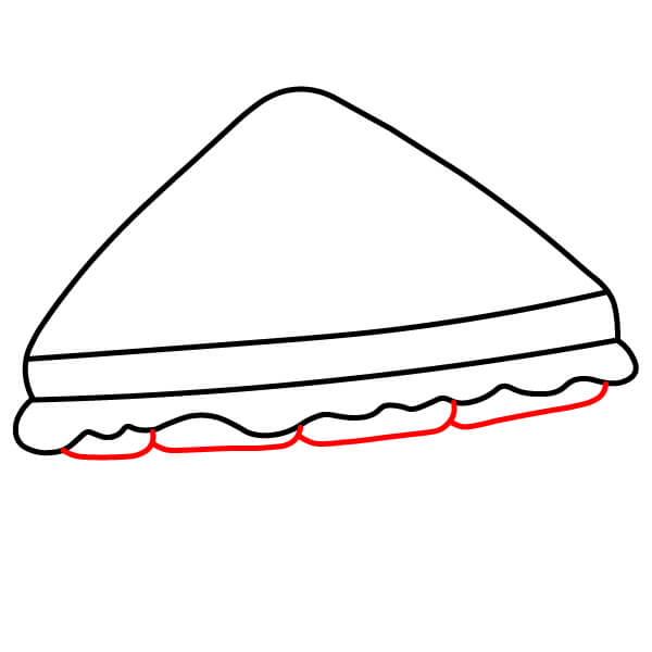 Paso 3: Debajo del primer relleno, dibuja una segunda línea ondulada. Esta representa una fina rebanada de carne.