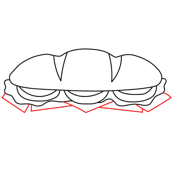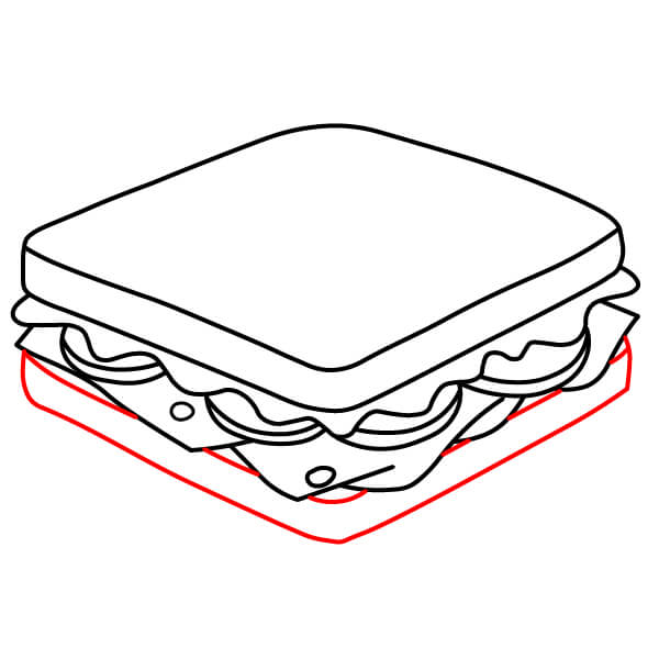 Paso 6: Completa el contorno del sándwich dibujando el panecillo inferior, uniéndolo a los rellenos.
