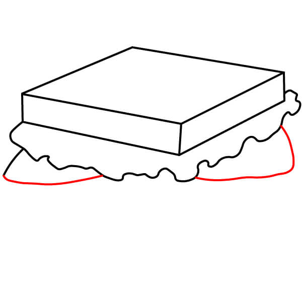 Paso 5: Completa el sándwich dibujando la rebanada inferior de pan. Esta debe ser otro rectángulo tridimensional, que refleje la rebanada superior y encierre todos los rellenos.