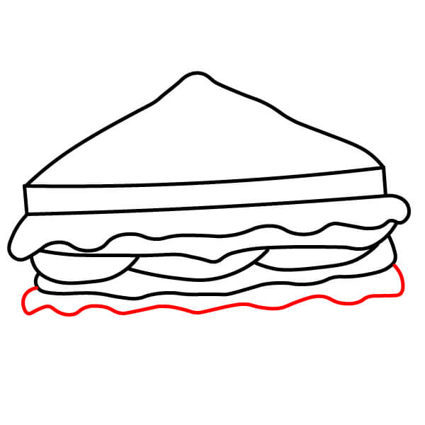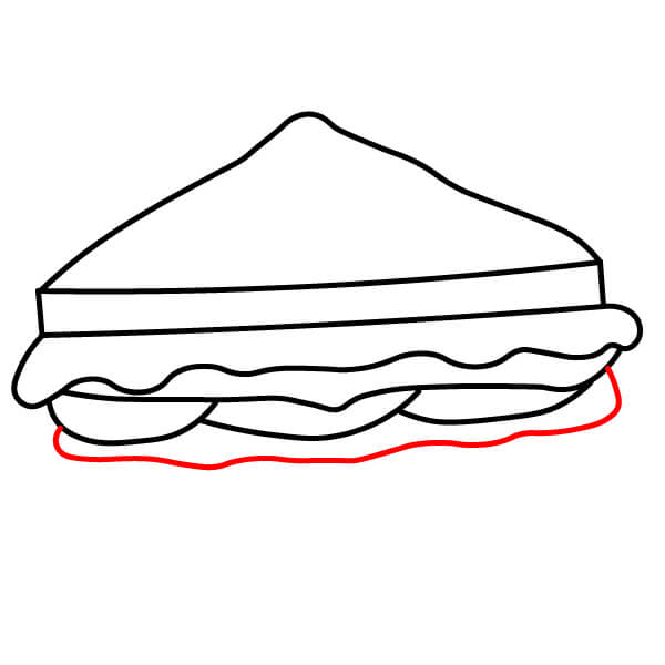 Paso 7: Dibuja una línea recta para el borde inferior de todo el sándwich, creando la base de la rebanada inferior de pan.