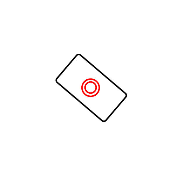 Dibuja un cuadrado con esquinas ligeramente redondeadas. En el interior, dibuja dos círculos pequeños horizontalmente cerca del borde superior para los sensores o ventanas.