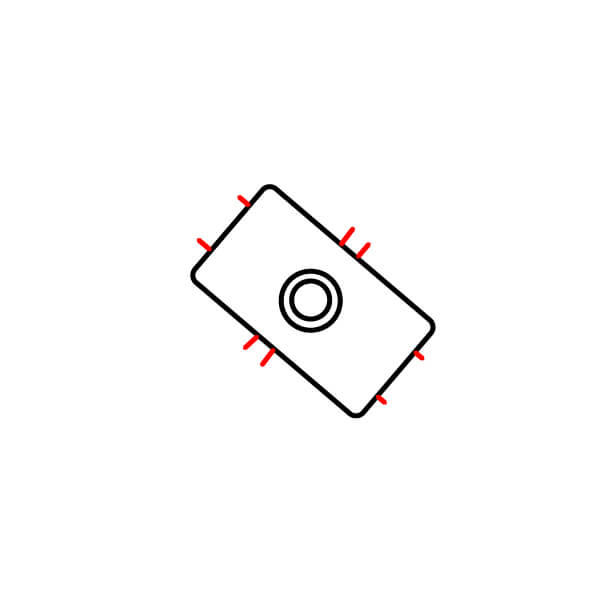 Dibuja un pequeño rectángulo redondeado que sobresalga de los bordes superior derecho e inferior izquierdo del cuerpo principal. Estos podrían ser conectores o dispositivos auxiliares más pequeños.