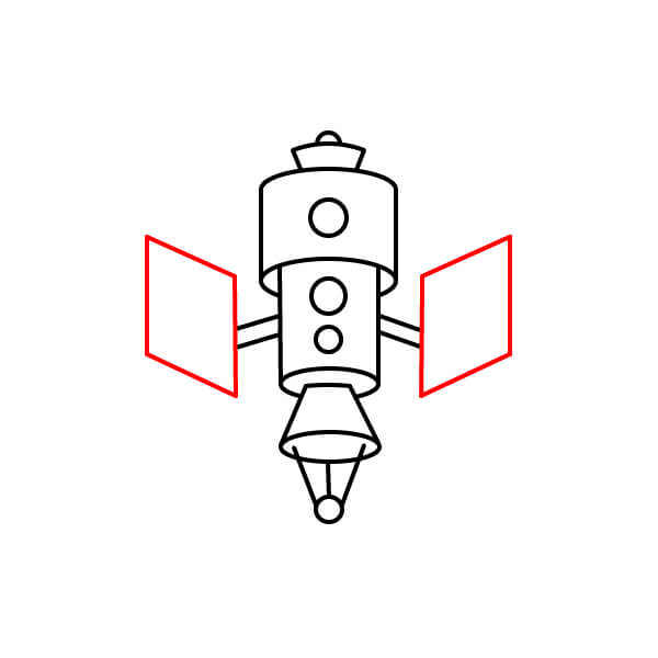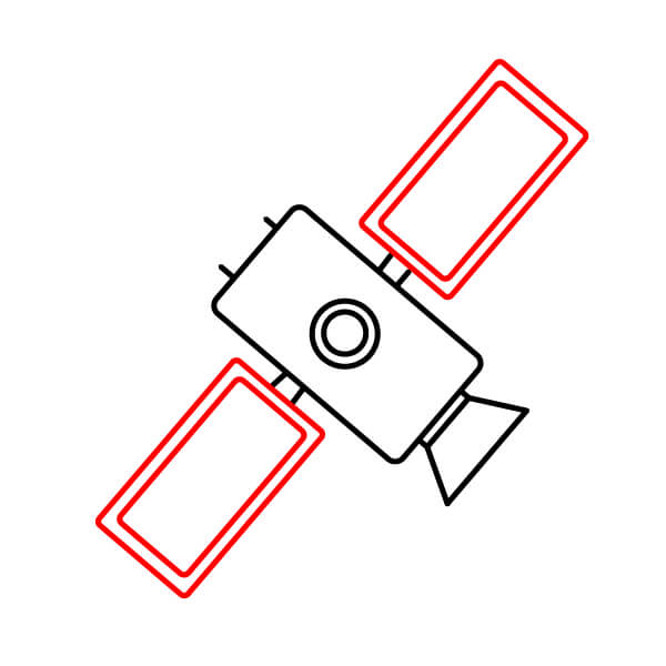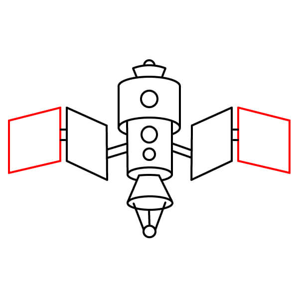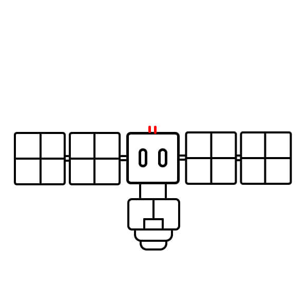 Dibuja dos pequeñas líneas paralelas que sobresalgan del centro de cada lado del cuerpo principal. Estos serán los puntos de conexión para los paneles solares.