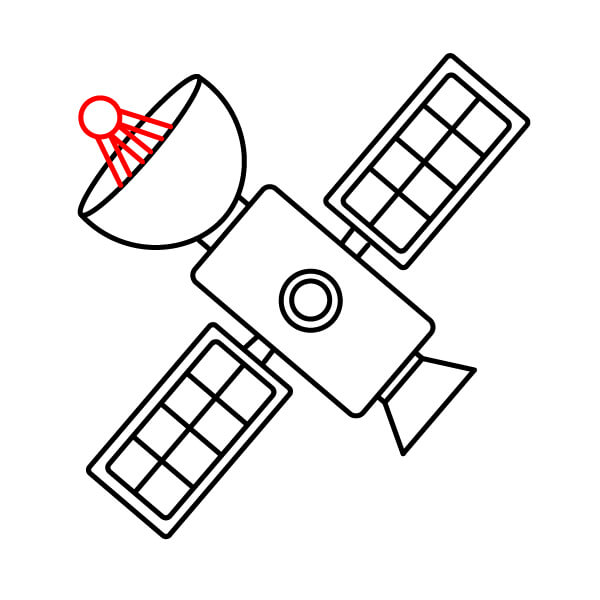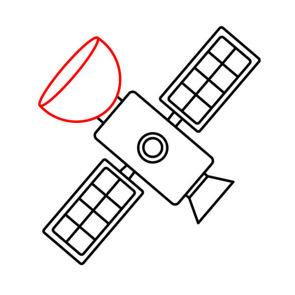 Dibuja una línea desde la parte superior derecha del cuerpo y fija un semicírculo grande orientado hacia abajo (la antena principal de comunicaciones).