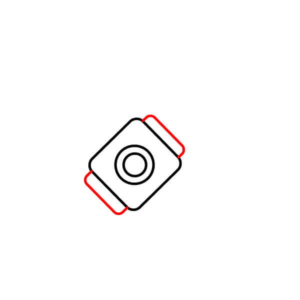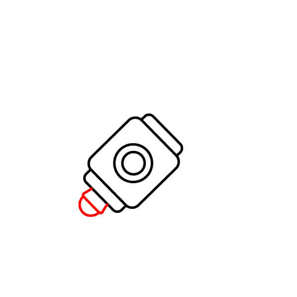 Dibuja una forma trapezoidal que sobresalga de la parte inferior derecha del cuerpo para la cámara o la boquilla de escape.