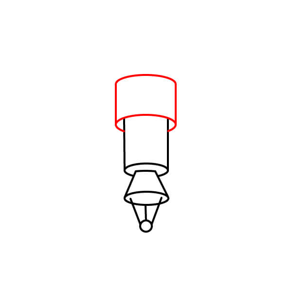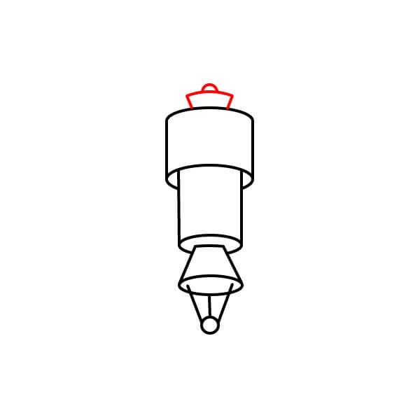 Dibuja una pequeña tapa decorativa en la parte superior del cilindro superior.
