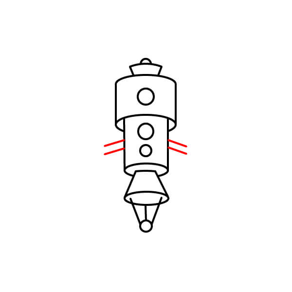 Dibuja una serie de pequeñas formas concéntricas y redondeadas que se extiendan desde la parte inferior del cuerpo y terminen en una pequeña línea curva para representar un propulsor o la tobera del motor.