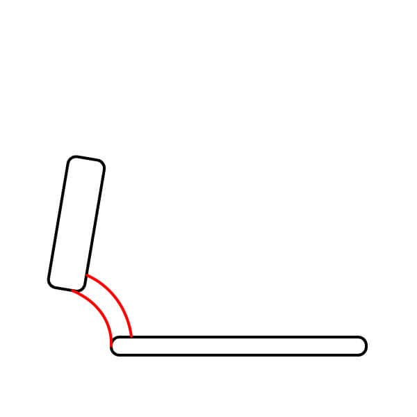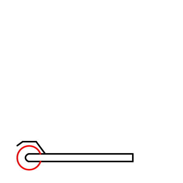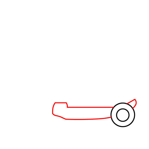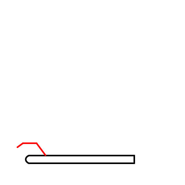 Paso 2: En el lado izquierdo del rectángulo redondeado, añade un pequeño segmento de línea en ángulo que se extienda ligeramente hacia arriba y hacia la izquierda. Esto formará el guardabarros de la rueda trasera.