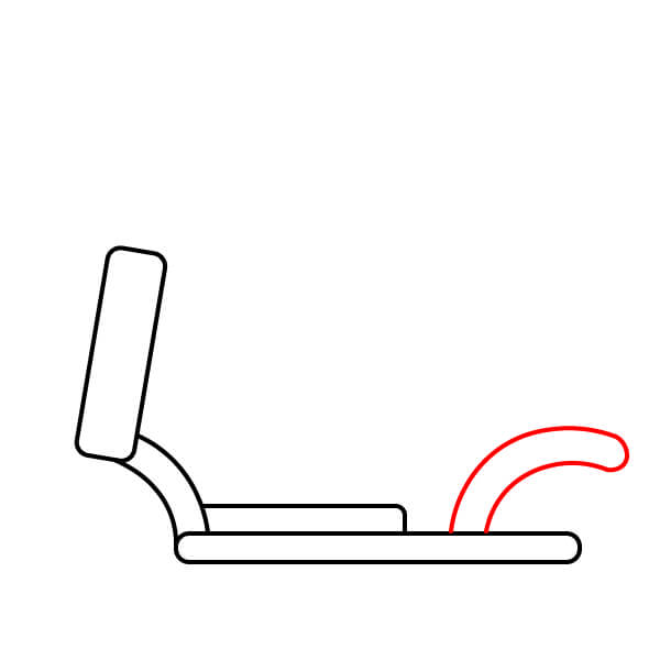 Paso 3: Ahora, dibuja una línea curva que conecte el segmento en ángulo del paso 2 con el rectángulo redondeado, formando una “C”. Esto completa el guardabarros de la rueda trasera.
