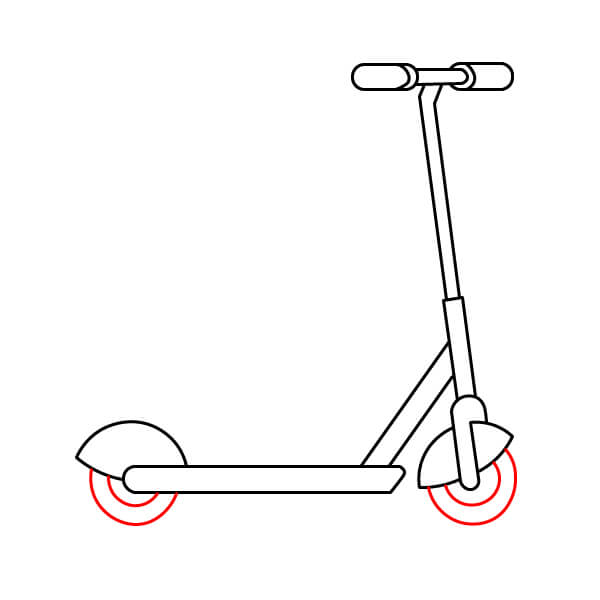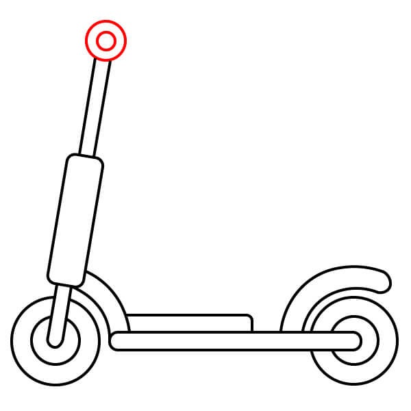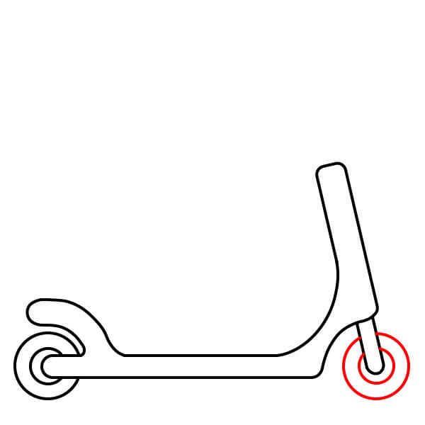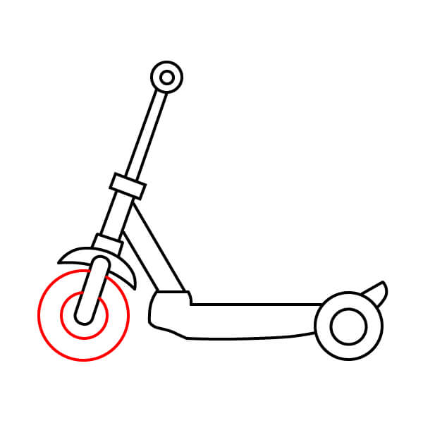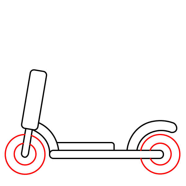 Paso 7: Dibuja dos círculos concéntricos en la parte delantera y trasera del scooter para crear las ruedas.