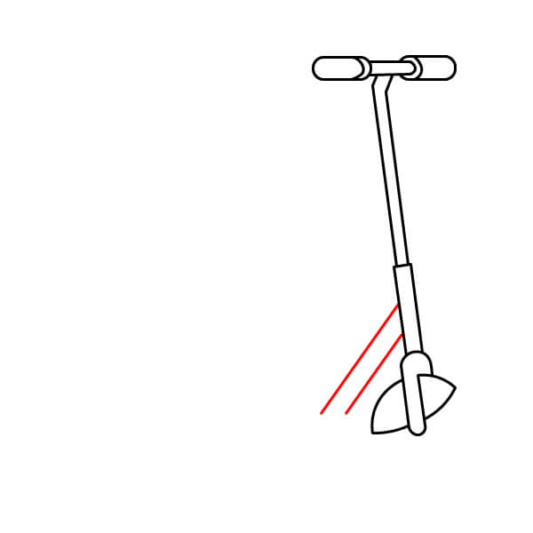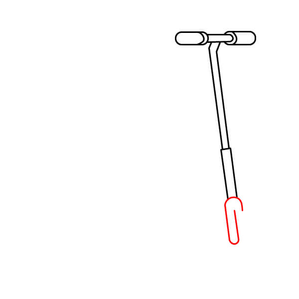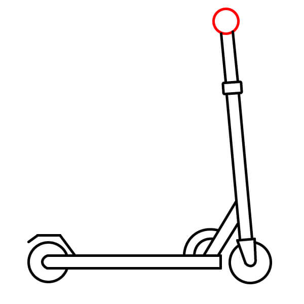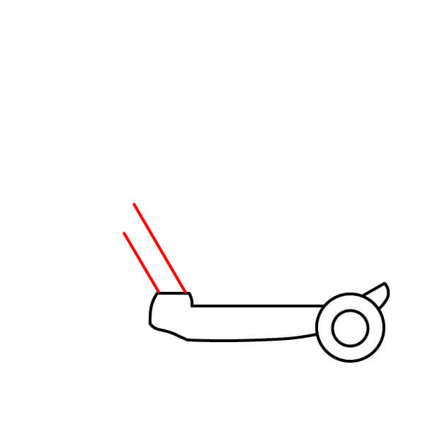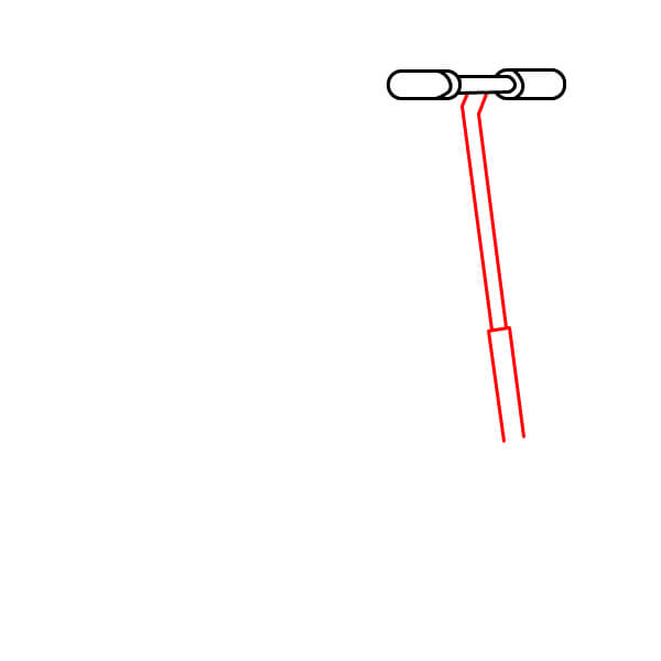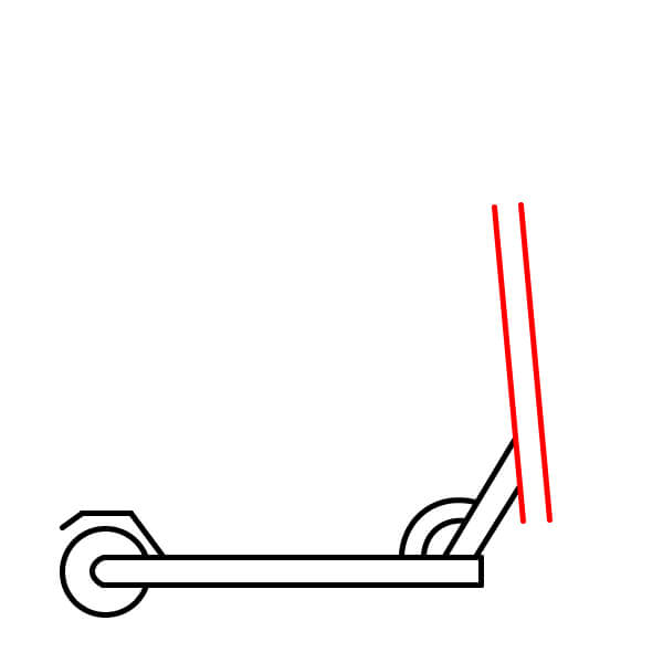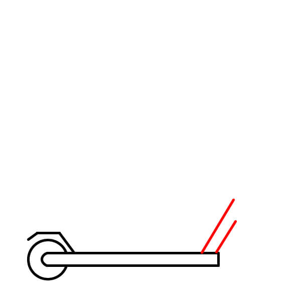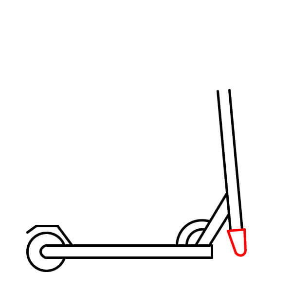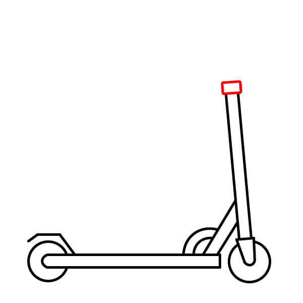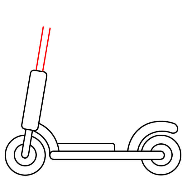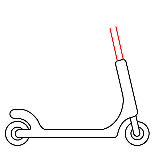 Paso 10: Dibuja dos líneas paralelas más que se extiendan verticalmente hacia arriba desde el pequeño rectángulo dibujado en el paso 9. Estas representan el manillar del patinete.