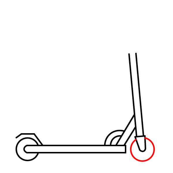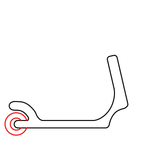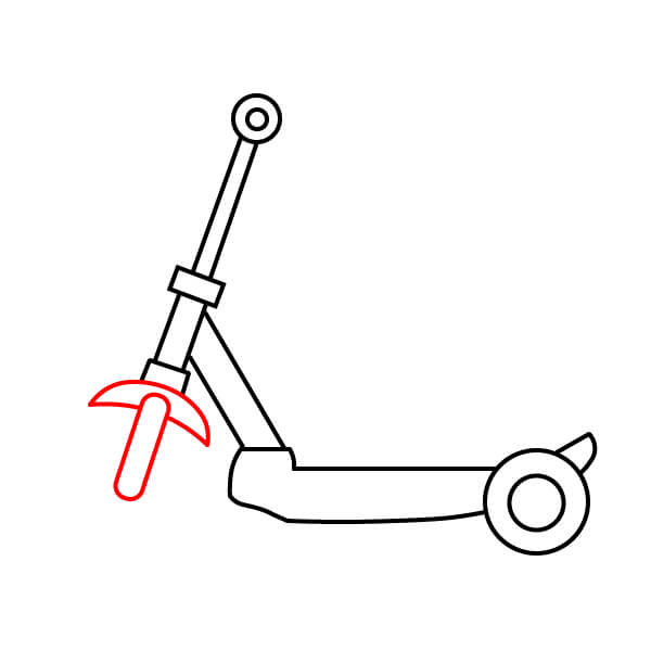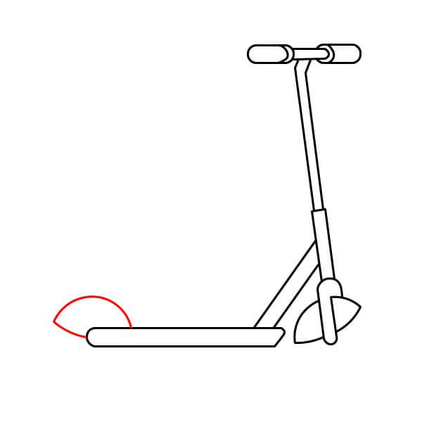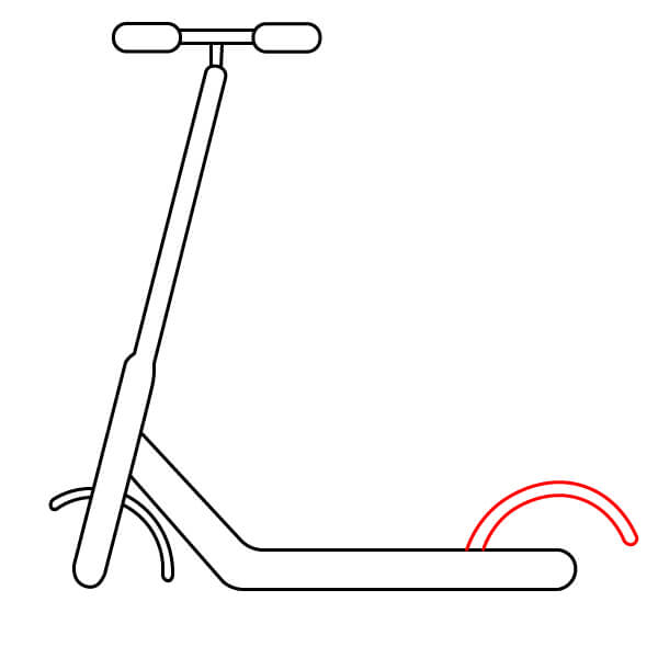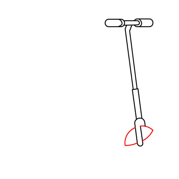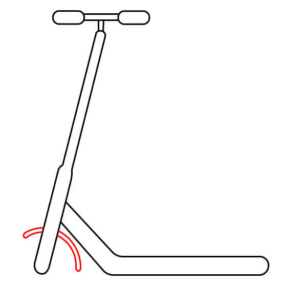 Paso 3: En la parte delantera del patinete, dibuja una línea curva en forma de U. Esta será la horquilla delantera que sujeta la rueda.