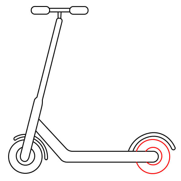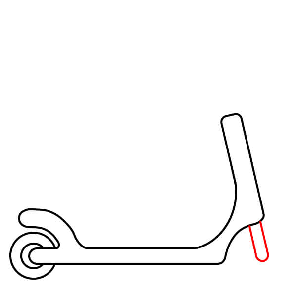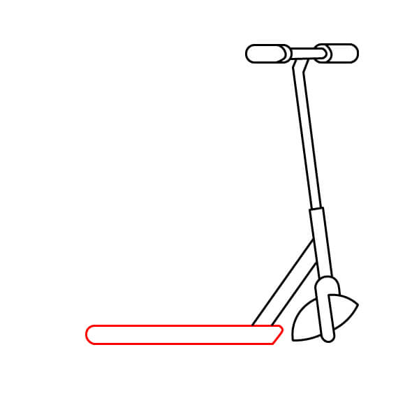 Paso 2: Dibuja el cuerpo principal (base) del patinete, extendiéndose desde la rueda trasera hacia adelante.