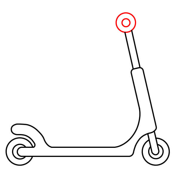 Paso 8: Dentro de la “U” dibujada en el paso 7, dibuja un círculo completo. Esto representa la rueda delantera del patinete.