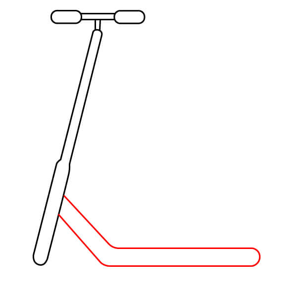 Paso 2: Dibuja una línea curva larga que comience justo debajo de la conexión del manillar y se extienda hacia abajo y ligeramente hacia la derecha, terminando en un rectángulo aplanado y redondeado. Esto forma el cuerpo principal del scooter.