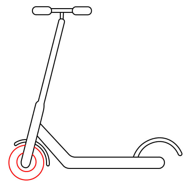 Paso 6: Dibuja el guardabarros delantero del patinete, colocado encima de donde irá la rueda delantera.