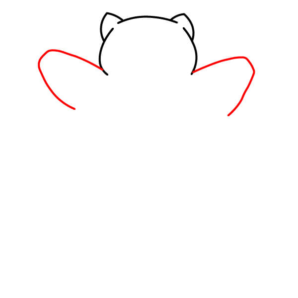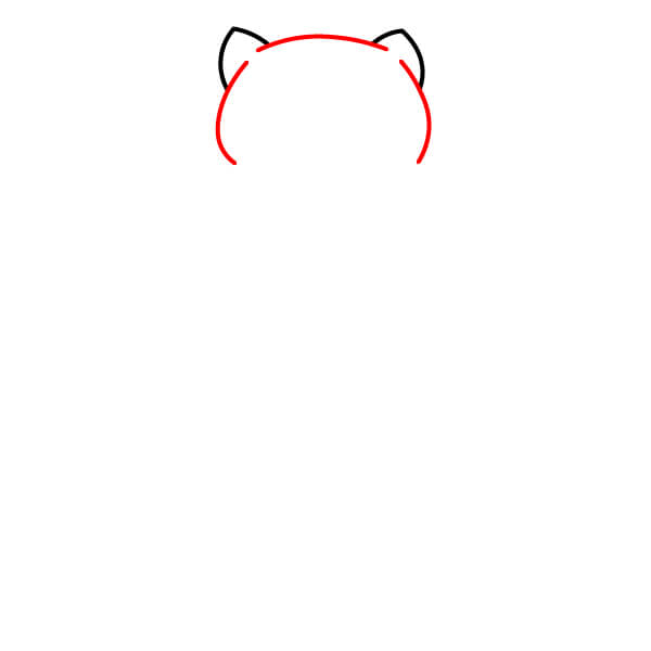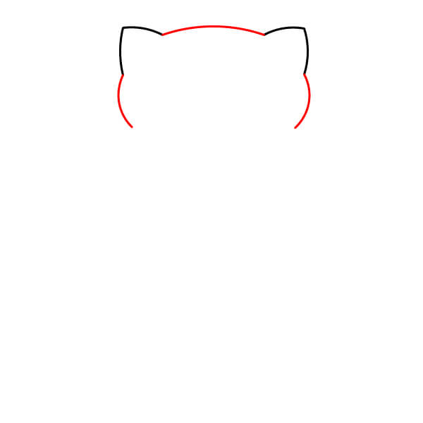Conecta las dos líneas de las orejas con una línea superior redondeada y ligeramente curvada. Agrega líneas curvas a los lados para completar el contorno de la cabeza, conectando las orejas con el punto donde comenzará el cuerpo.