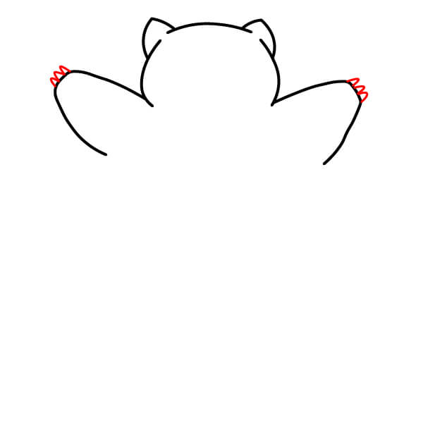 Al final de cada curva de brazo, dibuja tres pequeñas líneas dentadas para representar los dedos/garras.