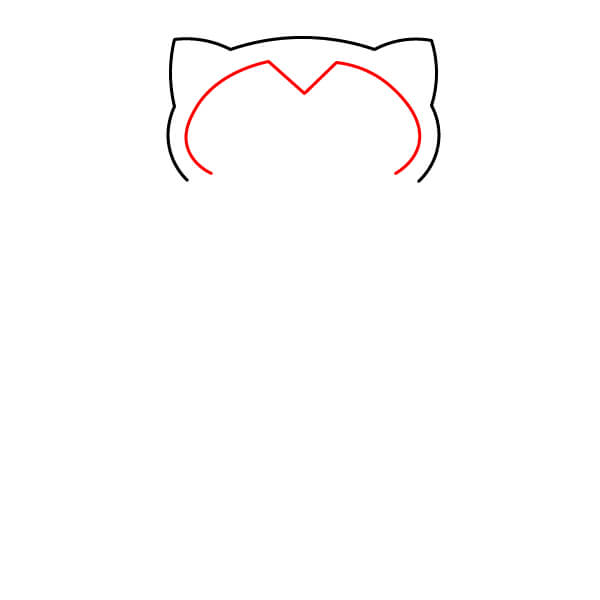 Comienza dibujando dos pequeñas “L” curvadas y separadas. Estas formarán la parte superior de las orejas de Snorlax.