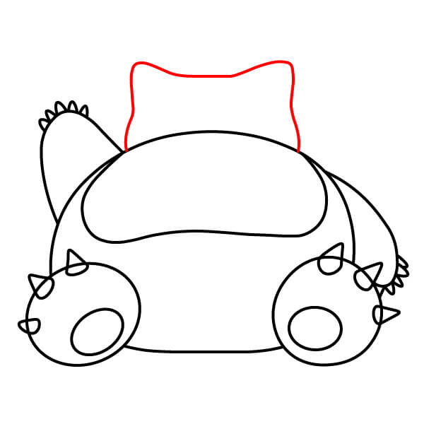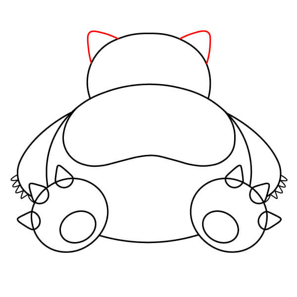 Dibuja dos formas pequeñas y puntiagudas sobre el círculo de la cabeza para crear las orejas de Snorlax.