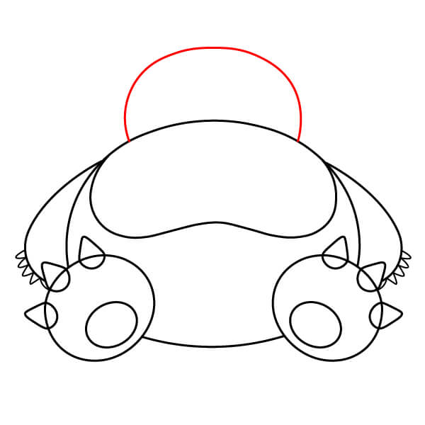 Dibuja un semicírculo o curva grande sobre el cuerpo principal, centrado sobre el pecho. Esta será la base de la cabeza de Snorlax.