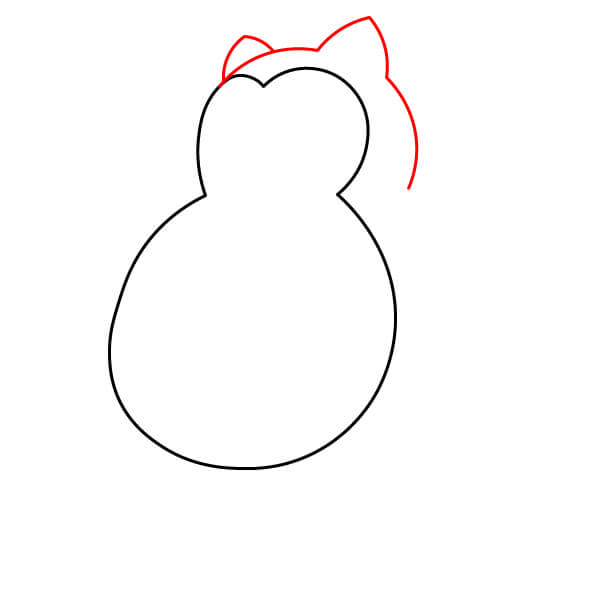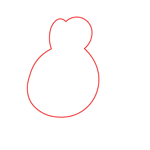 Dibuja una figura grande, aproximadamente en forma de ocho. La parte superior debe ser más pequeña, con una ligera hendidura o curva en forma de “V” en el centro superior (para la máscara y las orejas), y la parte inferior debe ser un círculo grande y ancho para el vientre.