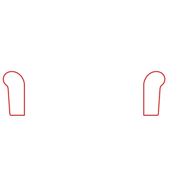 Paso 1: Comienza dibujando dos formas verticales irregulares, ligeramente curvadas, con la parte superior redondeada y la inferior plana. Estos son los reposabrazos.