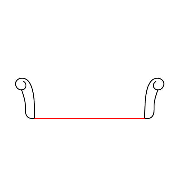Paso 2: Une los dos reposabrazos con un par de líneas horizontales. Esto formará la base del sofá.