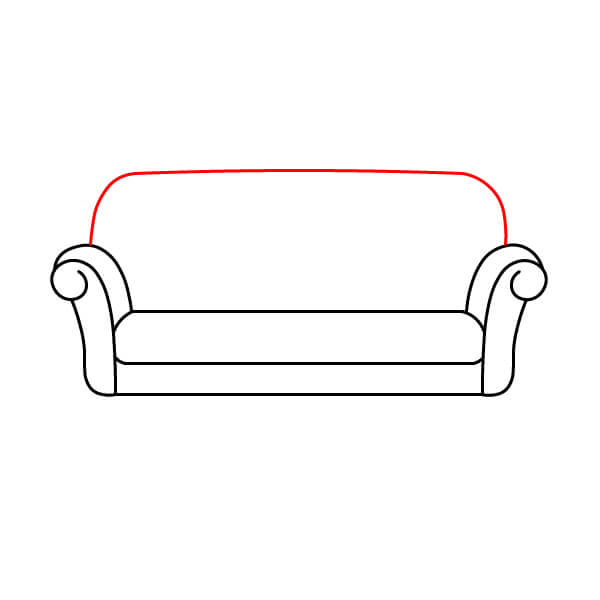 Paso 4: Añade el contorno del respaldo. Este es un rectángulo grande con extremos redondeados, que se extiende de un reposabrazos al otro.