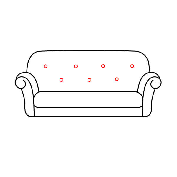 Paso 5: Dibuja tres círculos pequeños en el respaldo. Estos son los botones decorativos.