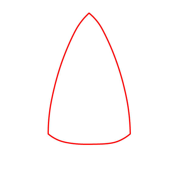 Comienza dibujando un cono alto, redondeado y puntiagudo. A diferencia de un triángulo regular, los bordes de este cono deben curvarse ligeramente hacia afuera antes de unirse en la punta.