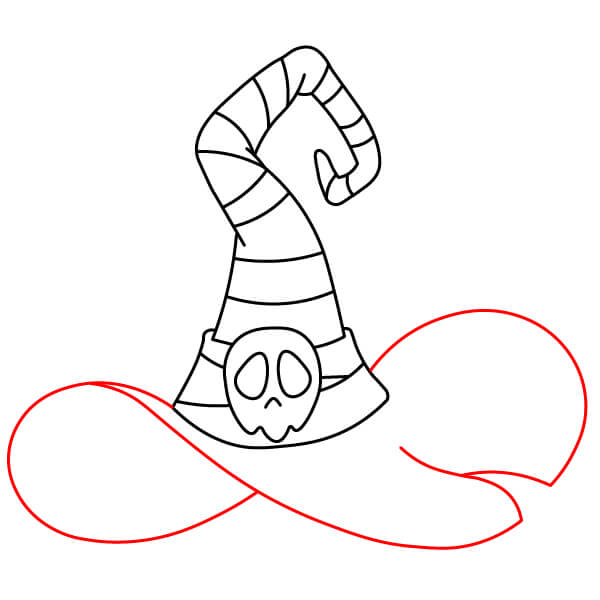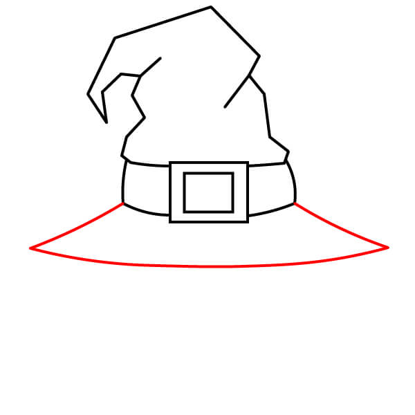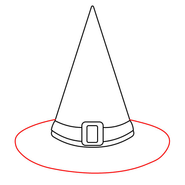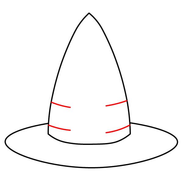 Dibuja los bordes inferiores de la banda del sombrero. Agrega una curva izquierda y una derecha, uniéndolas con los bordes inferiores del cono.