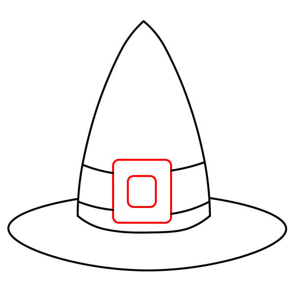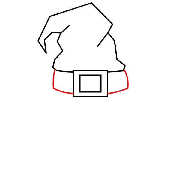 Añade correas para la banda del sombrero. Dibuja dos líneas curvas que se extiendan horizontalmente desde cada lado de la hebilla y las conecten con la parte inferior de la copa.