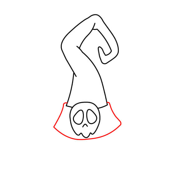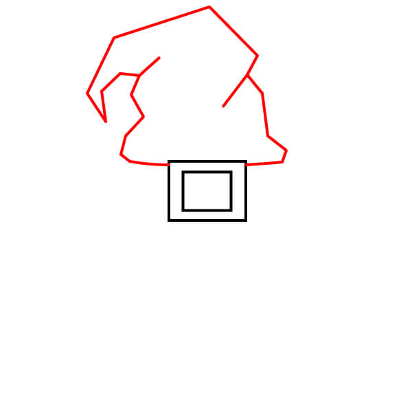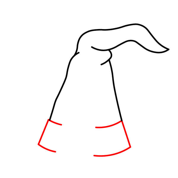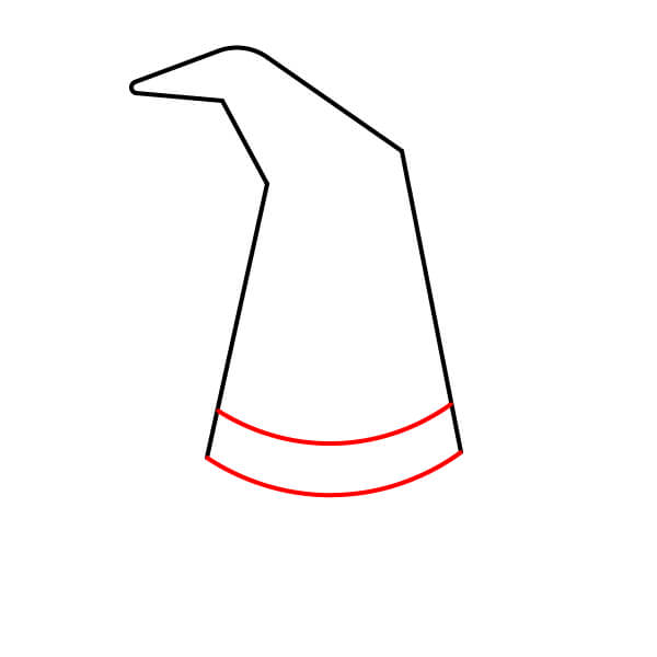 Comienza dibujando la forma alta y curva del sombrero. El cuerpo debe ser ancho en la base y estrecharse gradualmente. La copa debe curvarse bruscamente hacia la derecha y ensancharse formando una suave curva.