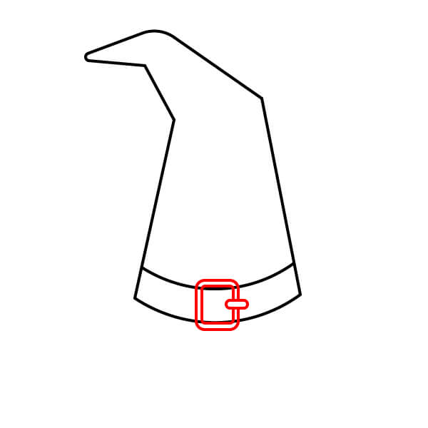 Dibuja el contorno del cono sobre la hebilla. El cono debe tener un contorno irregular y rugoso, lo que le da un aspecto tosco y mágico, y debe curvarse hacia la izquierda.
