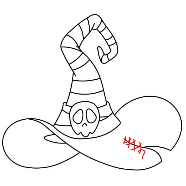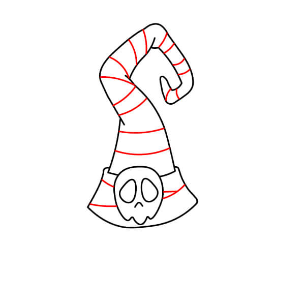 Añade curvas horizontales a lo largo del cono, siguiendo su forma, para crear rayas. Estas deben estar espaciadas uniformemente, lo que le da al sombrero un aspecto peculiar y rayado.
