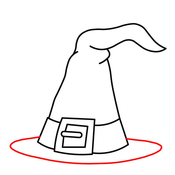 Dibuja un óvalo ancho y plano debajo de la banda y el cuerpo del sombrero. Esto formará el ala.